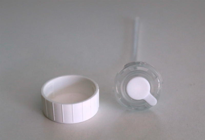 А вот дальше появилась проблема. В комплект входила только крышка-колпачок из твердого пластика, в которой не было никакого отверстия сверху. А как это все будет работать-то? Полез в инструкцию. Ну, в общем, там нарисовано, что эту штуку надо установить на контейнер для мыла, а потом пластиковую крышку просто снять откручивающим движением - там внутри головка с отверстием. А эта крышка - закрывать отдельно стоящий контейнер. На черта она вообще входит в комплект - непонятно совершенно.