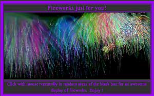 Простенькое, но эффективное развлечение под названием "Салют". Тыкаете мышкой в произвольные точки выделенного экрана, и там возникают огненные цветы салюта. Пустячок, вроде, а все равно приятно.