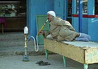 Но самый интересный, на мой взгляд, раздел - это "Все о кальяне". Потому что курение кальяна - это вам не бычок в рукаве смолить и даже не трубкой пижонить. Курение кальяна - это целое священнодействие. Если курение сигареты, как правило, свидетельствует о несколько нервическом состоянии курящего, сигарета с мундштуком демонстрирует желание порисоваться, а трубка показывает наличие у человека определенных комплексов, то кальян демонстрирует только одно: человек, отдающийся обряду курения кальяна, настроен на философский лад и никуда не спешит. Кальян невозможно курить на ходу или на бегу, он не терпит никаких посторонних занятий. Единственное, чем можно заниматься, куря кальян, - это тихими смертоубийственными играми, вроде нард или шахмат, а также философствовать на различные общечеловеческие темы: политика, секс и автомобили.