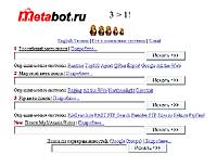 Очень полезная ссылочка - сайт "Метапоиск". Российский метапоиск, мировой метапоиск, поиск по FTP и попытки разыскать всякие MP3 и другие аудио- и видеофайлы. Слово "мета" означает, что поиск ведется сразу по нескольким поисковикам.