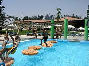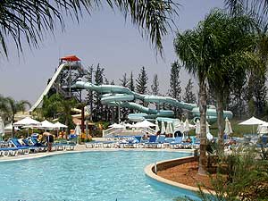 Лимасольский аквапарк "Watermania" находится за городом, километрах в десяти, и занимает довольно обширную территорию, обнесенную весьма условным забором. Набор аттракционов - впечатляет. Я хорошо помню некие заведения с одной единственной пластмассовой трубой, лениво сваливающей вас в лягушатник с грязной водой, которые тем не менее не стеснялись именоваться "аквапарком". Но "Watermania" свое название несет с полным на то правом. Потому что одних только труб различных конфигураций и крутизны (в данном случае имеется в виду угол наклона) я насчитал штук десять, а там еще есть два вида водяных горок, бассейн с искусственной волной, несколько бассейнов "для кайфования", совершенно шикарный детский водный аттракцион (где взрослые резвились почище детей), бассейн с тренажером, тот самый знаменитый "апельсин", о котором рассказывала Катя, аттракцион "черная дыра", а также "ленивая река" - длинный извилистый бассейн, проходящий по всему периметру аквапарка. Так что в "Watermania" можно было действительно загрузиться на целый день, и даже, пожалуй, дня бы не хватило, чтобы вдоволь насладиться всеми аттракционами.