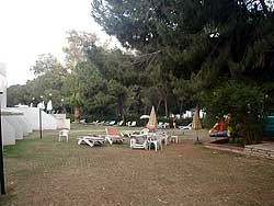 Разместившись в номере, мы отправились обследовать отель. "Парк бич" оказался небольшим, но уютным. Кубик основного здания был в основном административным: на нулевом этаже находились всякие служебные помещения, прачечная, кухня и так далее; на первом этаже, куда с улицы вел пандус, располагался холл, стойка портье, бар и небольшой ресторан, а на втором - десяток номеров. На территории отеля стоял ряд двухэтажных каменных зданий со стороны улицы и такой же ряд со стороны моря. В них и располагались основные типовые номера. К зданию со стороны моря вплотную прилегала длинная лужайка с английским газоном и шезлонгами, далее территория отеля заканчивалась небольшой железной оградой, за ней находилась та самая небольшая эвкалиптовая роща, дающая приятную тень газону отеля, а после нее начинался городской пляж.