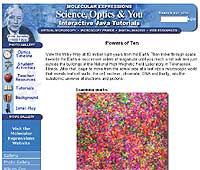 Довольно интересная ссылка - сайт "Молекулярное изображение". Система простая. Заходите, ждете загрузки небольшого ролика. Далее перед вами возникает участок нашей Галактики из точки, находящейся за 10 миллионов световых лет плюс минус сантиметров десять от Млечного пути, а затем каждую секунду изображение увеличивается на порядок. Таким образом вы видите сначала Млечный путь, затем нашу Солнечную систему, после этого Землю, штат, город, лужайку, дерево, лист и далее вглубь - до атомов и молекул. Вот так прямо до кварков можно и донаблюдаться. Занятие, кстати, вполне даже увлекательное. Как-то сразу чувствуешь себя причастным к глубинам космоса.
