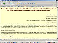 Довольно интересная статья с длинным названием "Антология нечестных приемов журнальной и сетевой полемики, применяемых для защиты неправых мнений и отравляющих людям общение". По полочкам аккуратно разложено все, что относится к данной теме: брань, переход на личности, оскорбления, наклеивание ярлыков, некорректное цитирование, уход от ответа и так далее. С одной стороны, никакая Америка тут не открыта, но с другой - сделана попытка четкой систематизации, поэтому статью будет довольно полезно изучить модераторам различных конференций и чатов.