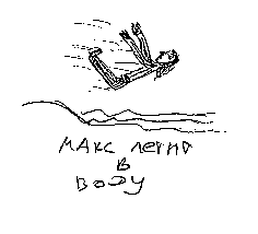 - А теперь, мой дорогой Буратино, водные процедуры! - с этими словами он взял Макса одной рукой за воротник, другой за пояс и швырнул чуть ли не на середину реки.