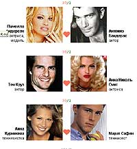 Новая интернетовская забава под названием "Давайте их поженим". Система простая. Вам предлагается или составить пару из присутствующих на сайте кандидатов (причем новых кандидатов вы сами можете добавлять), или отдать свой голос за уже составленную пару. Самые проголосованные парочки попадают в рейтинг и красуются на главной странице. Также ведется рейтинг самых популярных личностей.