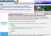 В MSIE обнаружена очередная дырочка. Ну так, простенькая... Обычная дырочка. С помощью несложной команды на веб-странице, через эту дырочку в MSIE у вас на компьютере можно запустить любую программу, причем безо всяких предупреждений. Какую программу? Ну, какую-нибудь "format c: /complete", вероятно. А чего мелочиться? Раз есть дырка, значит ею нужно как-нибудь воспользоваться... Срабатывает, правда, не у всех и не на всех версиях MSIE, но когда срабатывает - выглядит убедительно. Примерно так же, как если бы к вам в квартиру совершенно спокойно вошел посторонний через наглухо закрытую железную дверь и стал бы варить себе кофе. Впечатляет, короче говоря, уровень защиты и тестирования майкрософтовских продуктов. Ничего себе дырочка! Это вам не колготки порвать. Эдак всей информации можно лишиться...