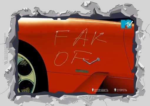 Открытки на сайте MTV - это просто супер. Не обязательно их куда-то отправлять. Вы просто зайдите и развлекитесь. Во-первых, посмотрите на открыточку с розочкой. Вроде, ничего особенного, ведь таких открыток - пруд пруди, ан нет! В данном случае розовый куст вы формируете сами. Нужно аккуратно леечкой с водичкой прочертить траекторию, и после того, как вы отпустите кнопку мышки, на месте траектории прямо на ваших глазах вырастет потрясающе красивая роза. Из этих роз вы можете составить букет, клумбу или даже слова любви - например: "Дорогая! Какого черта ужин опять холодный?" Посмотрите, какая красота: