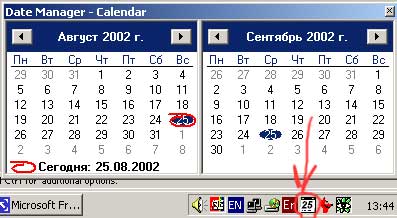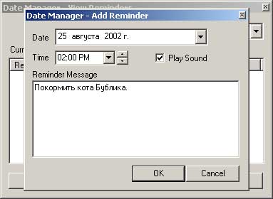 В процессе установки апдейтов для Windows 2000 мне было предложено скачать так называемый Date Manager - программу, которая устанавливается в system tray и позволяет вести простенький ежедневник с напоминаниями. Выглядит это вот так: