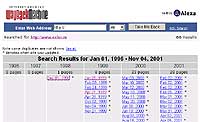 Итак, сайт WaybackMachine. Система крайне простая. Вводите интересующий вас URL и получаете таблицу всех вариантов этой страницы, зарегистрированных с 1996 года.