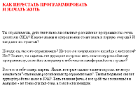 Кстати, о Лехе Андрееве... Вот здесь вы найдете прелестный текст под названием "Как перестать программировать и начать жить". Статья (гы-гы) посвящена проблемам трудоустройства российских программистов в США. Правда, тема эта рассматривается с несколько необычного угла зрения.