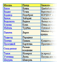 Следующая страничка, которую я хочу предложить вашему вниманию, устанавливает соответствие - точнее, разницу - между московской и питерской терминологией. Как известно, в этих двух крупнейших российских городах некоторые одинаковые по функциональности вещи именуются по-разному. Наиболее яркий пример - бордюр в Москве и поребрик в Питере.