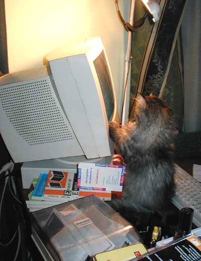 Увы, на этом пора прощаться. Удачной вам недели. Заканчивает обзор очередная фотография буйной кошки Нюси. Картина называется: "Кошка тянется к знаниям":