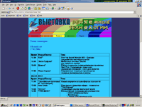 Выставка рекламных технологий радует нас настолько свежим дизайнерским решением, что Тема Лебедев просто отдыхает. Если заглянуть вот сюда, то вы увидите мощь рекламной технологии в самом ее крутом проявлении: таблицы, в которых расписаны семинары, представляют собой паршивенький листочек факса, который шкодливая рука дизайнера просто отсканировала и выложила на страницу. Очень современный и эффективный рекламный подход, ничего не скажешь. Тема отдыхает, однозначно!