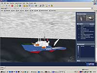 Причем вы можете видеть работы не только с различных точек, но и с разных сцен: погода и время суток, расчистка межкорпусного пространства в районе 4-го отсека, многофункциональное судно DSND Mayo и атомный крейсер "Петр Великий". Правда, для того, чтобы все это функционировало быстро и без задержек, рекомендуется довольно мощный компьютер (третий пентиум) и неплохой интернетовский канал. Но зато если у вас это все присутствует, то получите довольно интересную модель - действительно в реальном времени можно наблюдать то, что происходит в районе подлодки "Курск". Кстати, напоминаю, что в свое время "Параллелграфикс" делал такую демонстрацию в реальном времени падения и затопления станции "Мир".