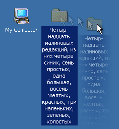 • Само по себе стихотворение также является названием самого себя -- потому, что является названием папки (в папку, кстати, ничего не стоит класть, чтобы не запачкать чистую идею windows-стиха)