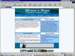 Наконец, хит сегодняшнего обзора - интернет-обозрения "Щепка в море" (http://chip.rost.ru). Ах-фигительная страничка, которая искренне меня порадовала. Подход к обзорам у автора - Дениса - весьма оригинальный. Страница с выпуском разбита обычно на шесть прямоугольников, где в трех из них перепечатываются анекдоты с сайта http:/sporu.net, а в трех других даются кратенькие обзоры. Я не очень понял суть перекладывания анекдотами обзоров, но может быть так веселее? Хотя зря они зацикливаются на этих анекдотах. Сами обзоры тоже могут доставить немало приятных минут своим слогом и стилем. Вот, к примеру:
