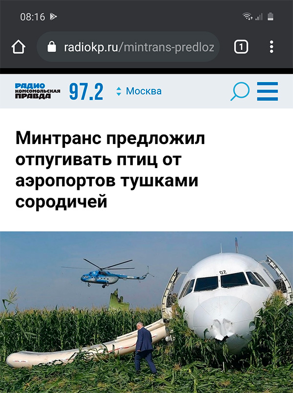 Вячеслав пытается понять, тушками каких именно сородичей Минтранс предлагает отпугивать птиц? Тушками сородичей Минтранса?
