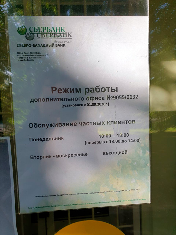 У "Сбербанка" крупный ребрендинг с потерей четырех букв, замечает Александр. Интересно, режим работы дополнительного офиса при этом увеличится или уменьшится?