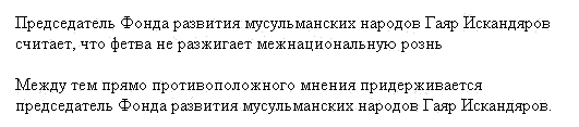 Нечего и удивляться, считает Владимир, что мусульмане между собой не могут договориться, когда председатель Фонда развития мусульманских народов сам себя противоположит самому себе!