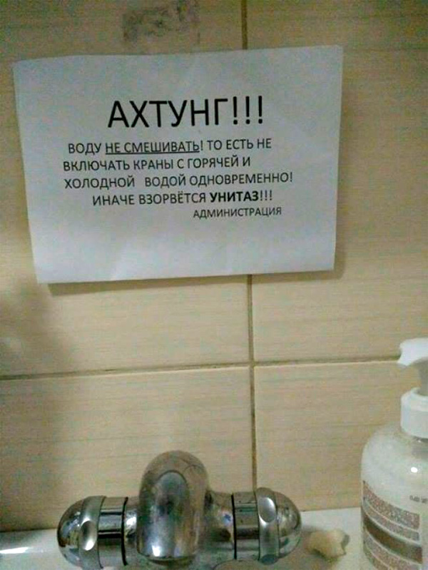 Сижу и гажаю: как (чисто технически) можно собрать узел, чтобы включение двух вод взорвало унитаз? Я уже не включить и посмотреть, я просто хочу видеть вот эти трубы, откуда что куда? Не хватает мне фантазии, чтобы представить! Хорошо, не на ночь прочла, а то ведь с такой нерешенной загадкой и спать бы не смогла бы 😄))))))))))
