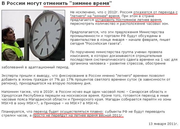 В России, пугает Андрей, могут отменить зимнее время. И летнее тоже. В каком времени будем жить? А черт его знает. Так и будем стоять раскорякой. Зимнее время отменят. На летнее мы просто не перейдем. Но хорошо, что в этом вопросе все-таки наблюдается полная ясность.
