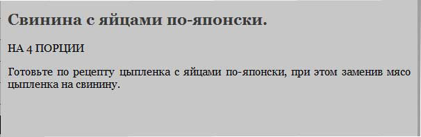 Не хотите мясо охотника, предлагает Андрей, отведайте свинину с яйцами по-японски. Это те же яйца, что и у цыпленка, но только в профиль.