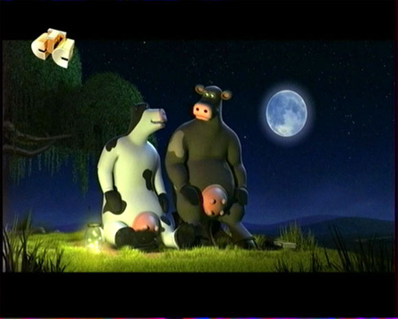 Не, в мультике они коровы 😉 - т.е. корова-сын и корова-отец, быков там как таковых нету. Вот такая "политкорректность". Поэтому и вымя, были бы быками пришлось рисовать кое-что другое...