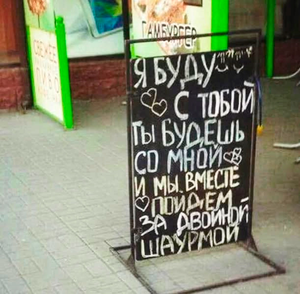 Последнее: "Добро пожаловать, овощи", что для алкомаркета прямо в точку.