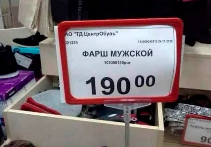 Не просто "Фарш мужской", удивляется Апологет, а еще и от "ЦентрОбувь".