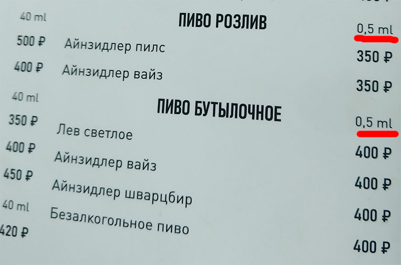 Про пиво. Понятно, что опечатка, не виним. Однако где-то 40 мл стоит больше поллитра, где-то меньше. Это что, борьба с алкоголизмом?