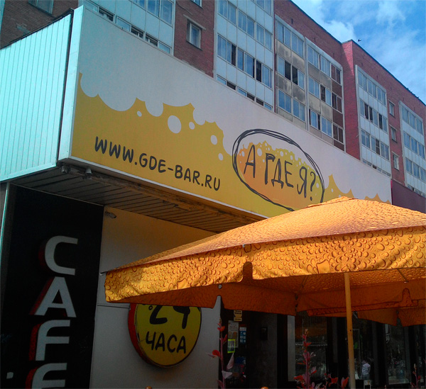 Михаил прислал пример очередного креатива - бессмысленного, но реально беспощадного. Владелец заведения небось гордится своей находчивостью - гы-гы и лол.
