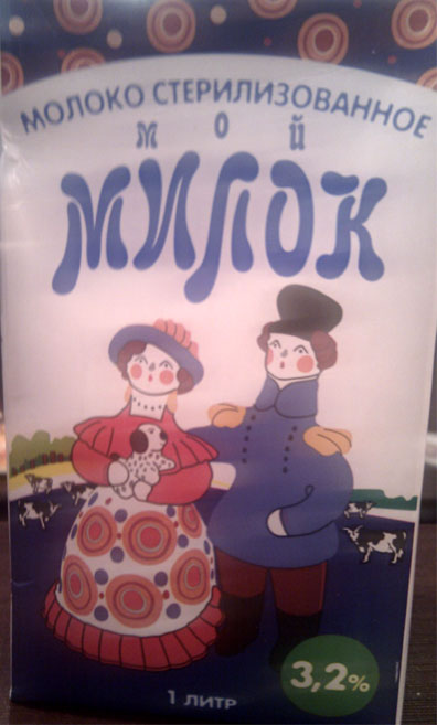 Вот тут, считает Dagor, налицо какие-то очень серьезные комплексы и даже девиации. Молоко "Мой милок" - само по себе звучит по-идиотски. Ладно еще морковка "Мой милок" - туда-сюда. А тут молоко... Но мы видим слово "Стерилизованное". И теперь становится все понятно! У этой розовощекой милки милок гуляет налево-направо. Полюбливает, короче говоря, всю деревню. Поэтому она мечтает его стерилизовать - то есть не доставайся ты никому! Так что это молоко - фактически целый любовный роман!