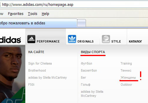 Кстати, в англоязычной версии адидасовского сайта ( www.adidas.com/us/homepage.asp - кликните на таб Performamce) отдельным видом спорта являются не только женщины, но и дети...