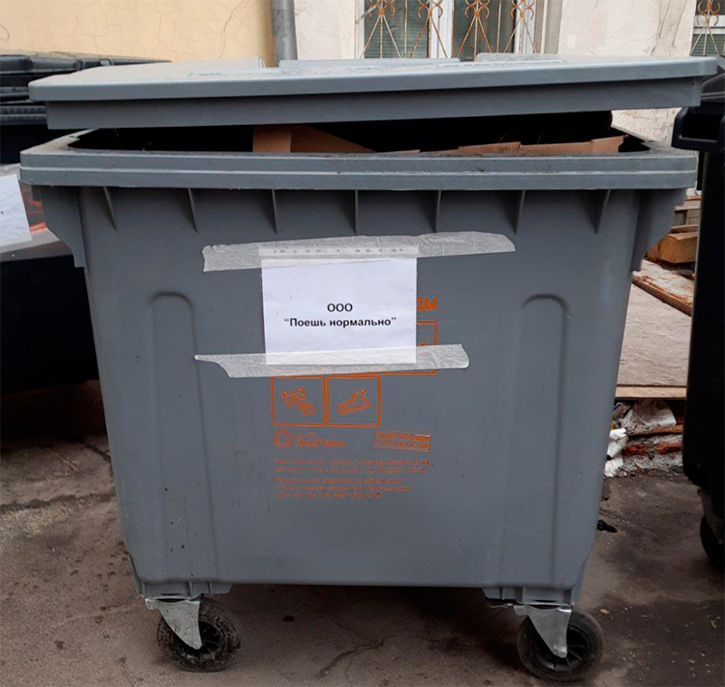Тогда и надпись на мусорном ящике станет оптимистической "Поёшь нормально"!