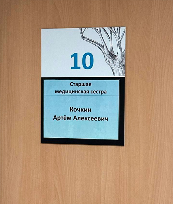 Идентификация тут ни при чём. Табличка на двери – план кабинета, согласно которому четверть кабинета занимает старшая медсестра, а три четверти - Кочкин Артём Алексеевич.