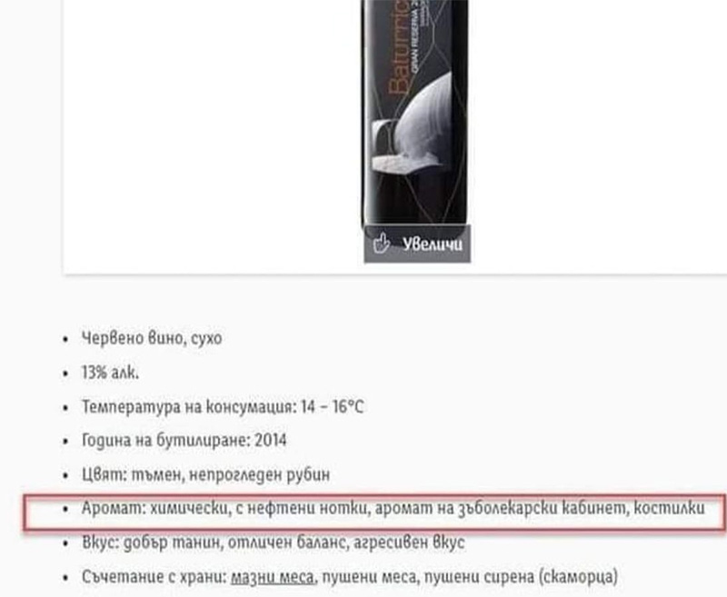 Болгарский "Лидл", удивляется Петя, предлагает вот такое вино Batturica Gran Reserva. Обратите внимание на ароматические характеристики - они интересные и необычные.
