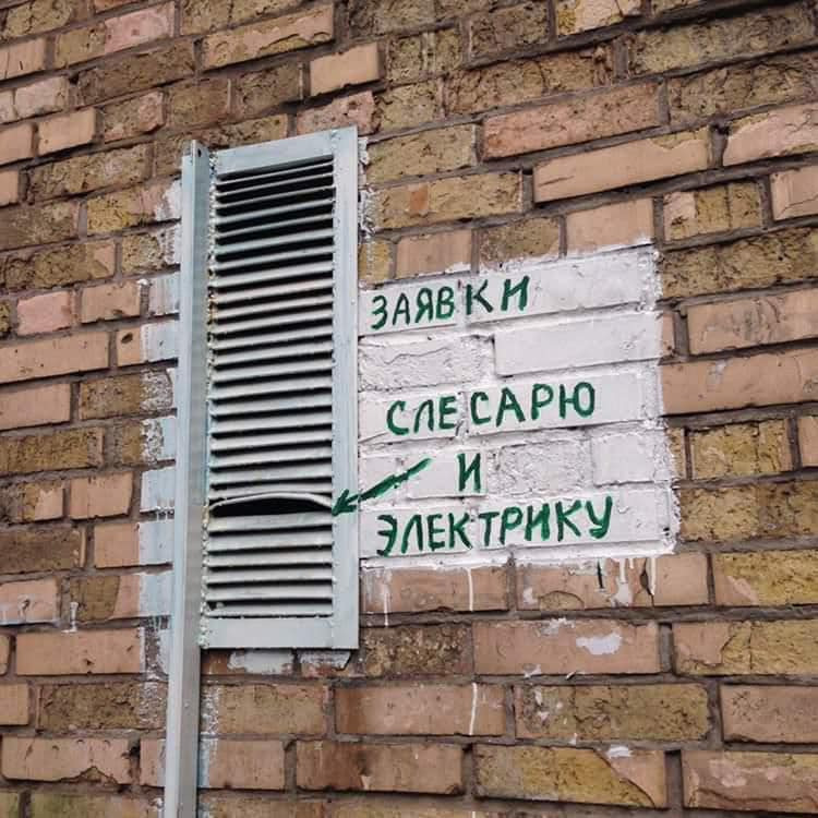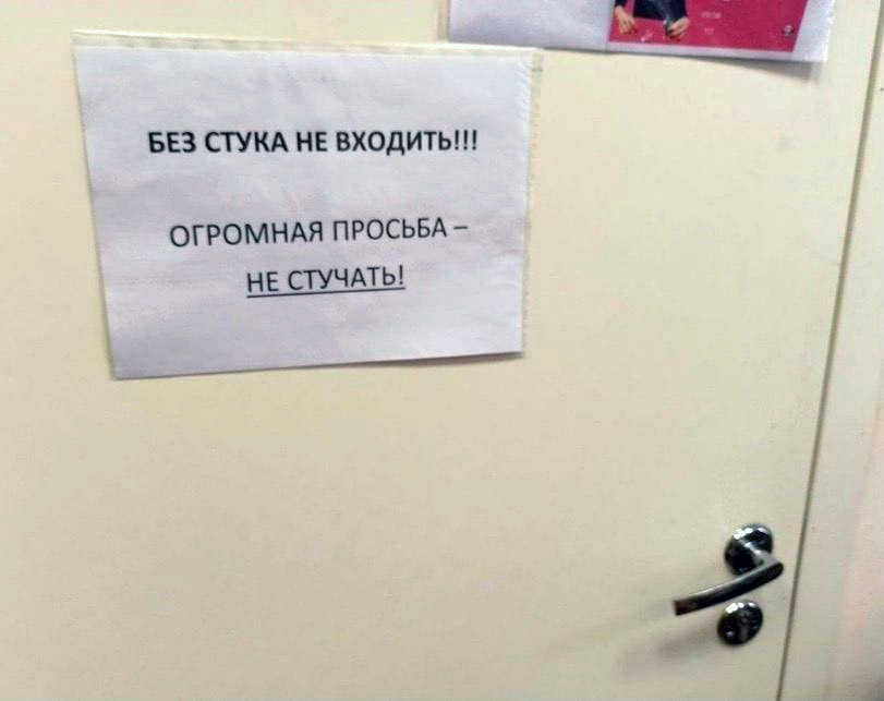 "Дверь окрашена. Стучать по телефону".