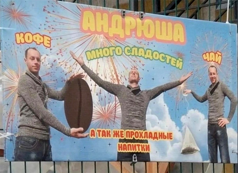 Не очень понятно, замечает Артем, а Андрюша-то там при чем? Он официант, что ли? И почему он держит в руках бейсбольную дыню и пакет с каким-то мусором?