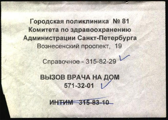 Юрий прислал реальный флаер, который ему выдали в поликлинике. С интимом в поликлинике, судя по всему, как-то не складывается. Видать, интимщица заболела. Грипп, эпидемия. Вовремя не проконсультировалась с врачом - и на тебе, услуги пришлось отменить.