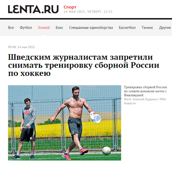 И, кстати, если уж на то пошло - баннизм в том, что запретили снимать тренировку как раз перед игрой со шведами 14.05 в 1/4 финала, а на фото - тренировка 11 или 12го числа перед игрой с финнами. Но это уж несостыковка совсем для гурманов.