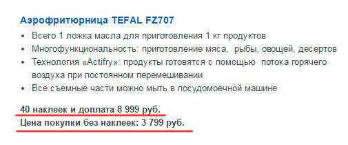 Интересно, спрашивает Сергей, а если наклеек собрать аж 80, то фритюрницу можно будет купить за 12 999?