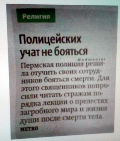 Хороший выпуск. "Гори мы зонт" далеко не сразу понял. А отучение полицейских от страха смерти - это вообще сюр какой то.