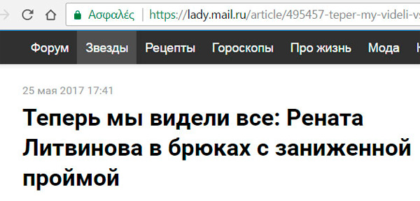 Профильный журнал, веселится Елена. А и правда: если увидеть Ренату Литвинову в брюках с заниженным отверстием для рукава - тут и правда офигеешь.
