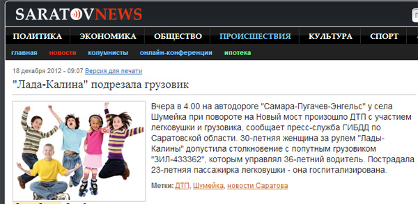 Сергею всегда нравились иллюстрации на "Саратов-Ньюс" - жизнерадостные такие. Врезалась в "КамАЗ"? Укатайка! Пострадала пассажирка? Дай пять!
