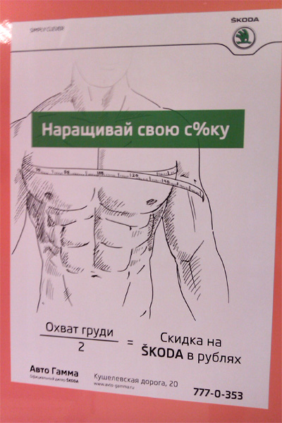 "Шкода" предлагает наращивать что-то неприличное, замечает Андрей. Но зато дает реально серьезные скидки на машину - рублей аж 60. А если очень упорно заниматься, то аж 65!