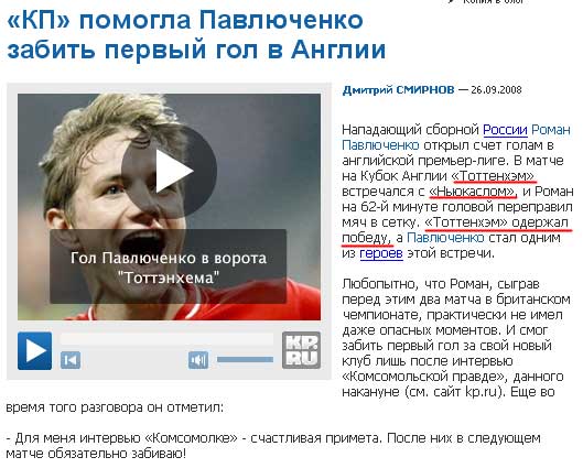 Видео подписано: "Гол Павлюченко в ворота Тоттенхема".