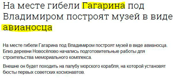 Памятник Гагарину в виде авианосца? Лучше бы памятник ГЛОНАСу поставили.....в виде подводной лодки.