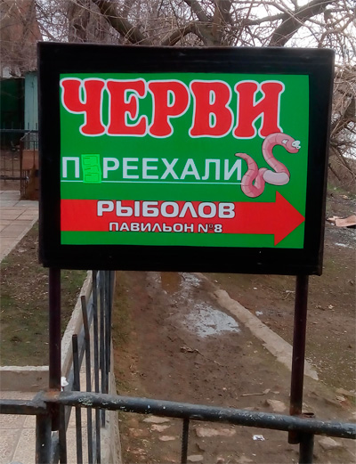 Насчет червей - не понял, что смешного в том, что червей продают в павильоне "Рыболов"? Они там и должны быть.