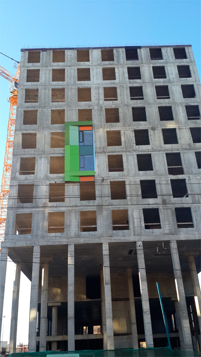 Бетонная коробка выглядет крайне ненадёжной конструкцией. Не думаю, что хлипкие колонны, поддерживающие половину коробки, спасут от разрушения.